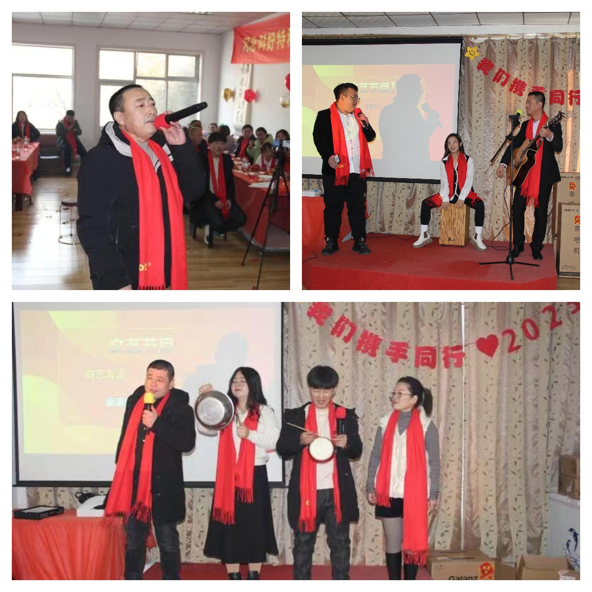 在掌声和欢呼声中,年会活动中穿插了是精彩纷呈的节目表演,销售部、设计部、生产部的同事们轮番上阵,有歌曲演唱、有吉他表演、有三句半相声...不得不说,我们的同事真是藏龙卧虎,多才多艺。