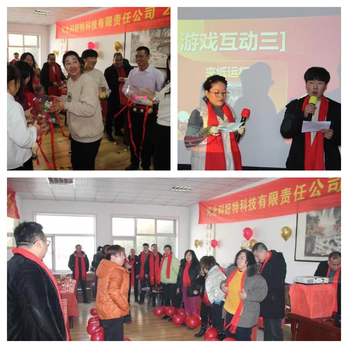 做游戏是我们企业年会必不可少的环节,大家都积极踊跃的参与进来,在欢声笑语中,进行了夹纸运杯、踩气球、公鸡下蛋等游戏,将年会推向了一轮又一轮的高潮。