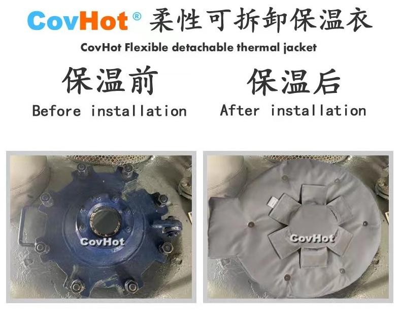 与传统的固定式保温措施相比,可拆卸保温套具有更好的经济效益。其定制化的设计减少了材料浪费,降低了成本。同时,由于其优异的保温性能和防护作用,可拆卸保温套能够延长设备使用寿命,降低维修和更换的频率,为企业节省长期运营成本。