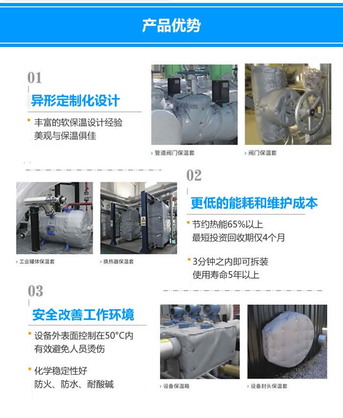 产品适应性强:(和传统保温比较有明显优势)可快速拆卸,可多次反复使用(传统保温只能一次使用)