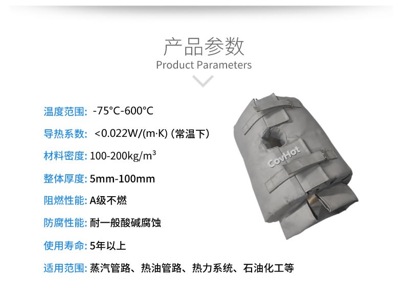 纳米气凝胶材料导热系数低,可以用在柔性可拆卸保温套上,具有很好的保温隔热效果。随着人们对工业保温隔热效果的要求越来越高,可拆卸纳米气凝胶保温套也越来越受到市场的欢迎。