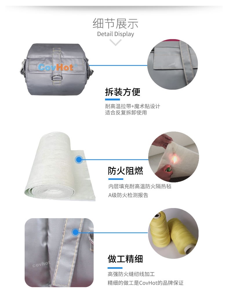 防腐蚀可拆卸法兰阀门保温套,保温绝热性能优良,能耐高低温,尤其适用于不同工业设备、阀门、管道等的保温隔热需求。