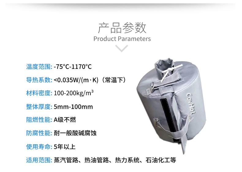 法兰柔性保温套的基本介绍 厚度:10mm-100mm自由定制 尺寸:DN20-DN400自由定制 隔热材料:玻璃纤维,陶瓷纤维,气凝胶材料 防护材料:涂层玻璃纤维布 适合法兰类型:通用 最高温度:1170℃ 颜色:通常灰色,其他颜色可选