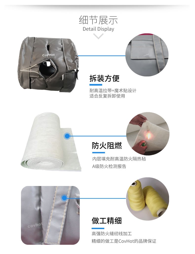 换热机组保温隔热套好处四,针对特殊地区可起到防冻作用。我国北方冬季寒冷,尤其是东北极寒地区,有的工厂不是24小时生产,晚上设备停用的时候恰好是气温低的时候,可拆卸隔热套不仅可用作保温,还能起到防冻的作用,防止外部低温损害设备,保证设备的运行稳定性。