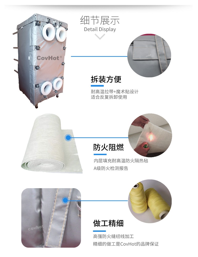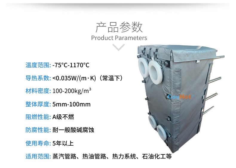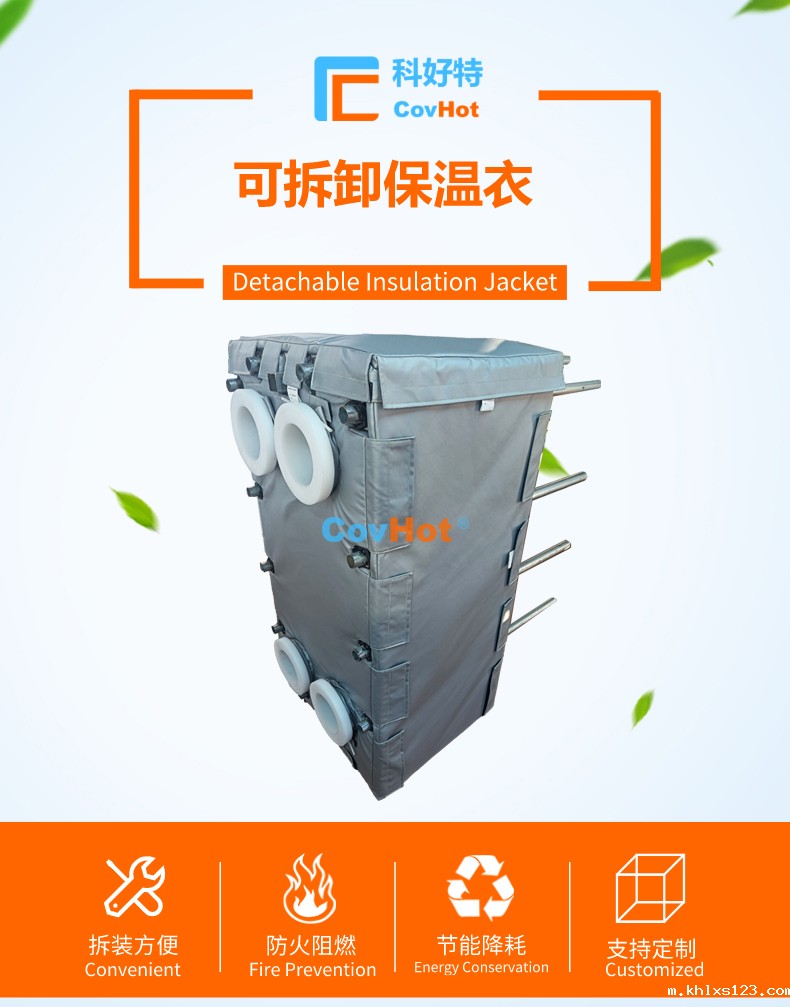 针对以上的问题,米兰国际足球赛官网自主研发的节能型板换保温套,根据设备不同的尺寸形状量身定制,可有效减少换热器的热损失,装拆方便,可重复使用。节能型板换保温套是工业节能保温理想选择!